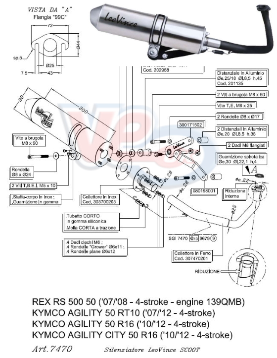 Leo Vince have created this 4 stroke racing exhaust system to fit the popular Asian made 4 stroke 50cc scooters fitted with the GY6 motors, also refered to as the 139QMA and 139QMB, this has exhaust has no provision for rear mudguard support, so if your model is fitted with a rear mudguard that is supported by the exhaust, then the mudguard will need to be removed when fitting this exhaust. This exhausts is road legal.