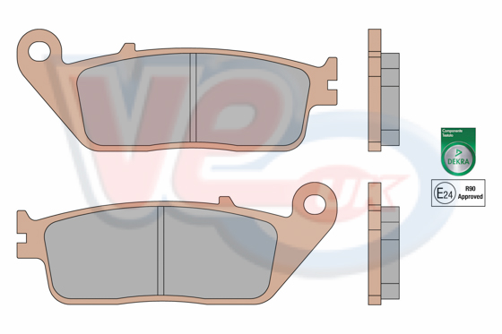 VM625027 Malossi Gold MHR Synt, brake disc Pads with sintered friction material have the highest friction coefficient and for this reason they guarantee shorter stopping distances with breathtaking decelerations. Their peculiarity consists in being able to keep a stable performance regardless of temperature and weather conditions. The friction material is obtained through a sintering process of metal dusts and other copperbased elements. The result is a compound able to enhance the braking power without reducing the lifetime of the pads. Cross Reference 6215027, 6215027BS.