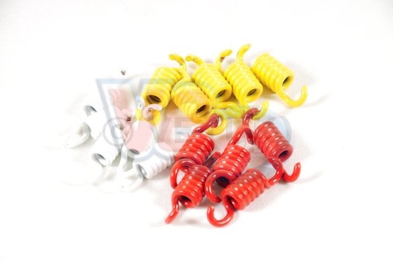 On automatic motors the clutch often engages at low revs, which is often where the motor is not producing its best power, stronger spring will hold the clutch shoes in till the motor is revving a bit more, meaning there will be more power to pull away with. Malossi supply their springs in packs of 3 strengths, identified by different colours, all 3 colours are stronger than standard so you can set the motor to how you like it.