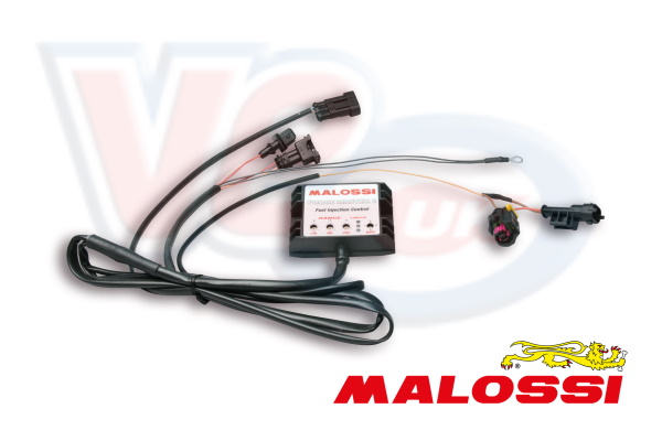 Malossi ForceMaster 2 - VM555723 - Electronic Fuel Injection adjustment unit for the Piaggio 350cc motor, raises the rev limiter from 9500rpm to 10500rpm, allows Carburation adjusting at 3 levels, ± 20% at min/medium/max, and has 4 different inbuilt maps for the following applications • curve 0: original cylinder, original head and Original exhaust • curve 1: original cylinder, original head, Malossi exhaust system with DB killer • curve 2: original cylinder, original head, Malossi exhaust system without DB killer • curve 3: adjustment values zeroed out .