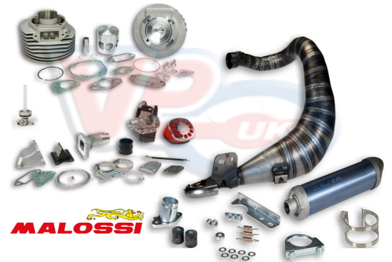 The Malossi Fast Road/Racing bundle, comes with the Malossi Aluminium MHR 135cc Cylinder kit VM315829, Malossi's latest MHR Racing Exhaust VM326857, the Malossi MHR 25mm Reed Valve carb kit VM166561 and an OMG fast flow fuel tap VE13092. If fitting this to a 50-90-100 motor, Primary gear kit VE11115 is recommended, and if fitting this to a 50cc motor a 125cc 51mm stroke crankshaft is needed.