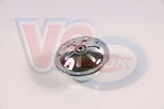 (CHROME 6v DC HORN - PETAL DESIGN WITH BLACK CENTRE BADGE)