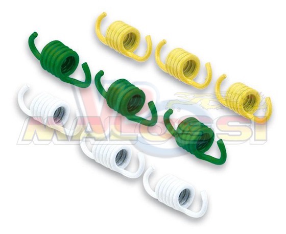 On automatic motors the clutch often engages at low revs, which is often where the motor is not producing its best power, stronger spring will hold the clutch shoes in till the motor is revving a bit more, meaning there will be more power to pull away with. Malossi supply their springs in packs of 3 strengths, identified by different colours, all 3 colours are stronger than standard so you can set the motor to how you like it.
