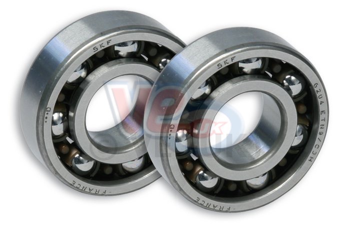 High-speed bearings with increased load capacity, designed and tested for endothermic racing engines. Special high-speed precision bearings, reinforced for increased load and heavy applications, with oversize balls, carbonitrided inner rings, steel and polyamide cages. The co-operation of Malossi technicians with the company SKF allowed to obtain an important technical result for the fi ne-tuning of high-quality racing engines. These bearings measure 20x47x14 (C3H).